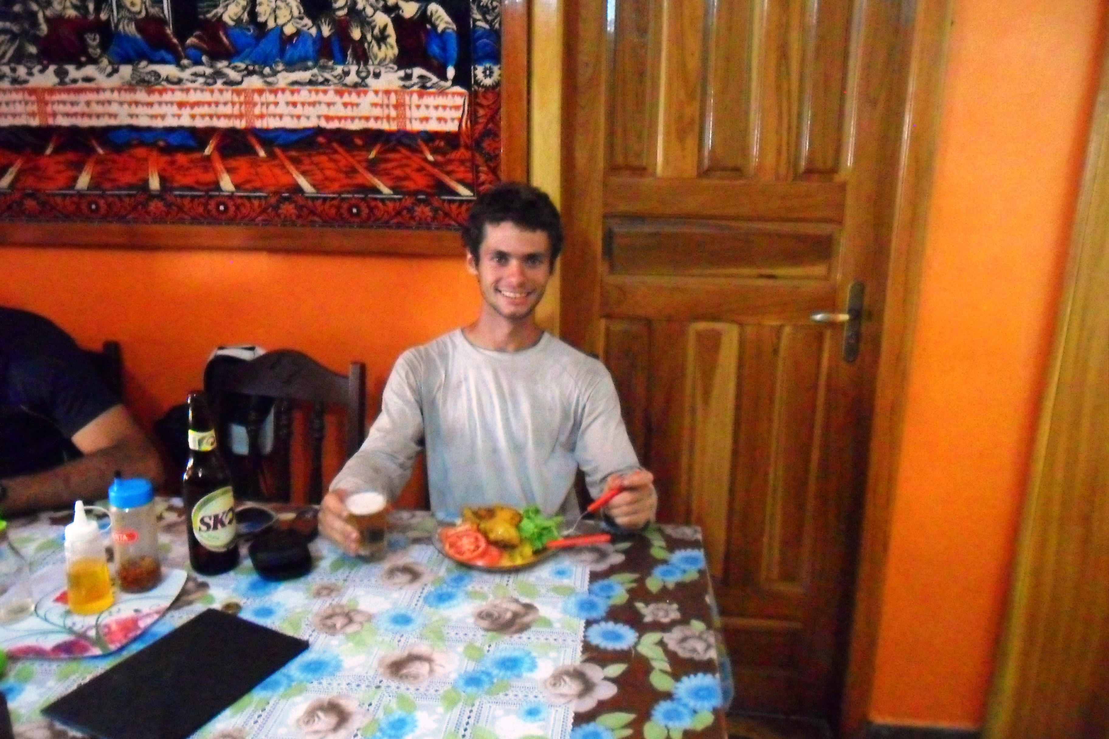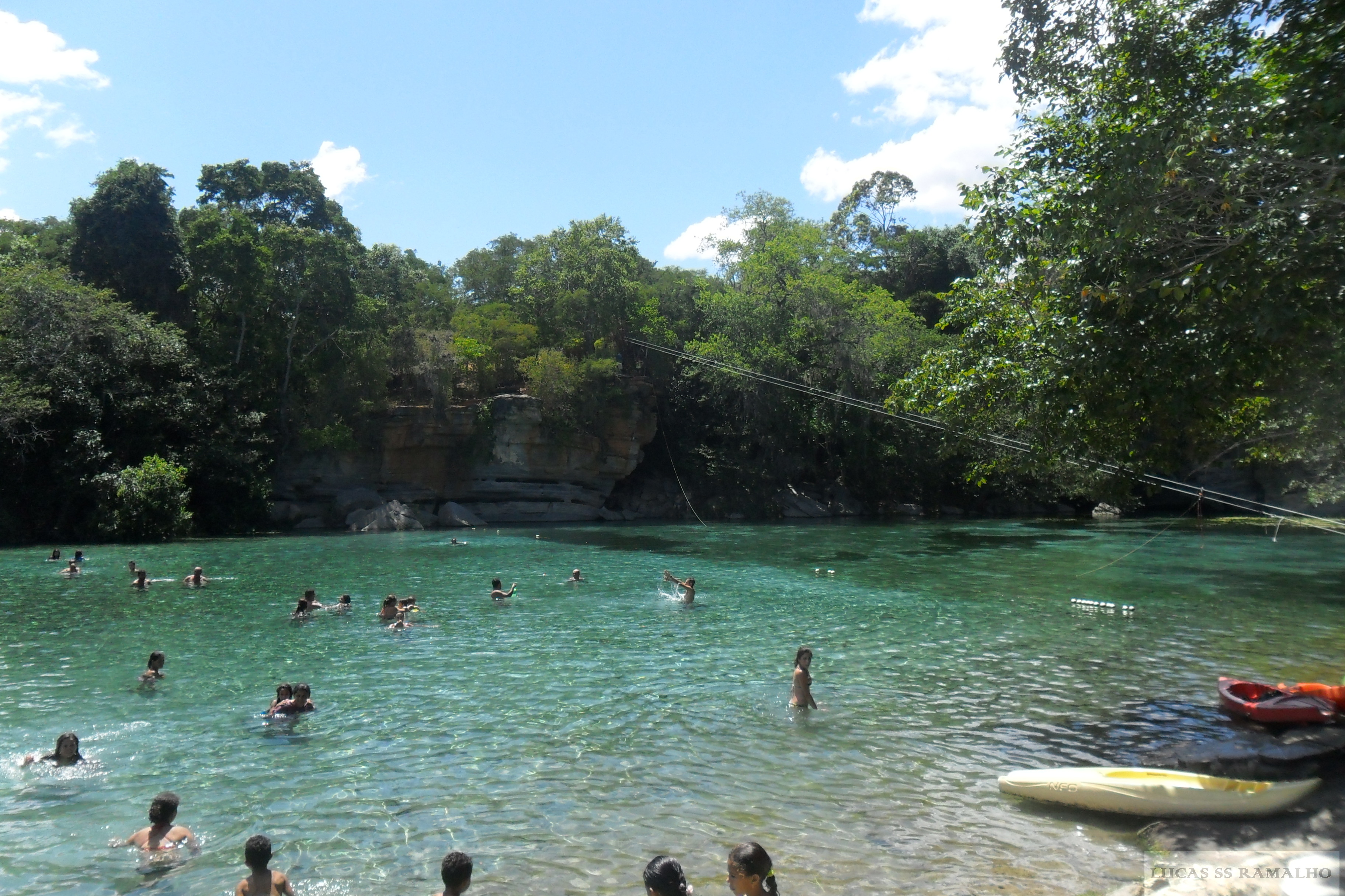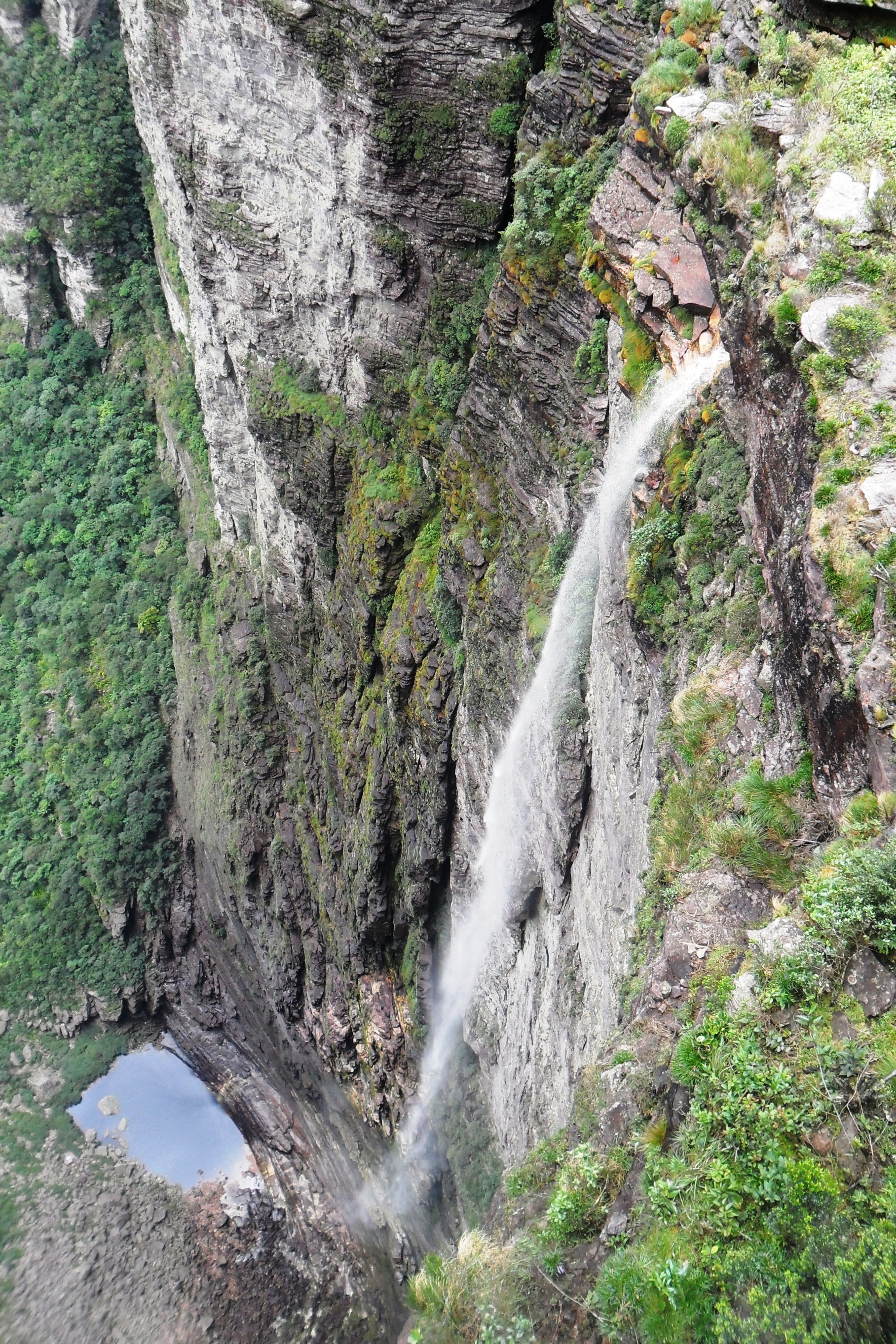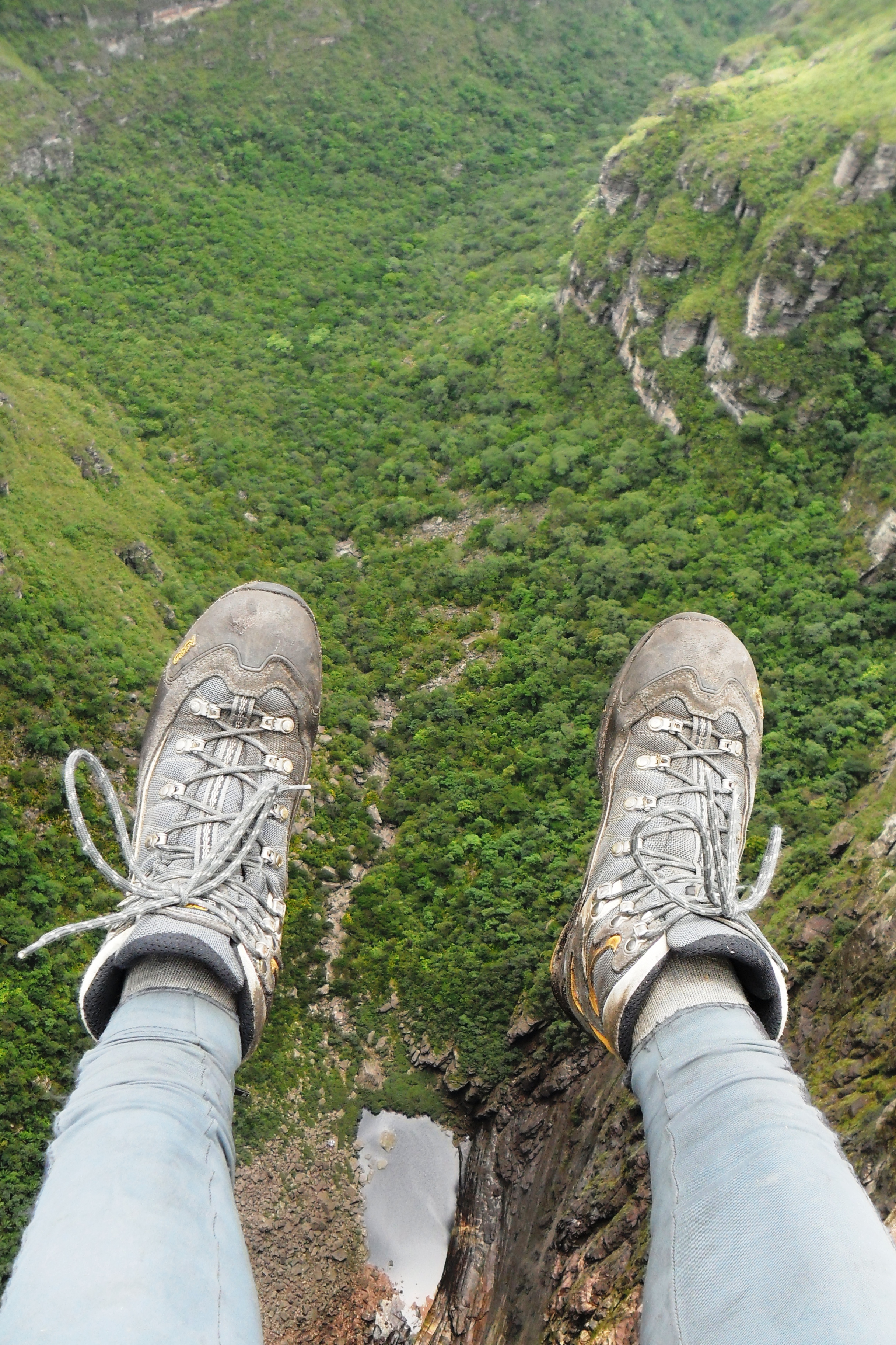 Cheguei na cidade por volta das cinco da manhã, caminhei um pouco, comprei um mapa na loja dois irmãos, abasteci minha mochila com os últimos alimentos incluindo uma garrafa de vinho. Depois tomei um café da manhã reforçado e às 9h com a cargueira nas costas parti sozinho em direção ao Ribeirão do Meio. O caminho até lá é bem tranquilo. É um lugar bem divertido onde se forma uma espécie de tobogã e se pode escorregar na cachoeira. Também está cheio de poços onde se pode tomar banho à vontade.